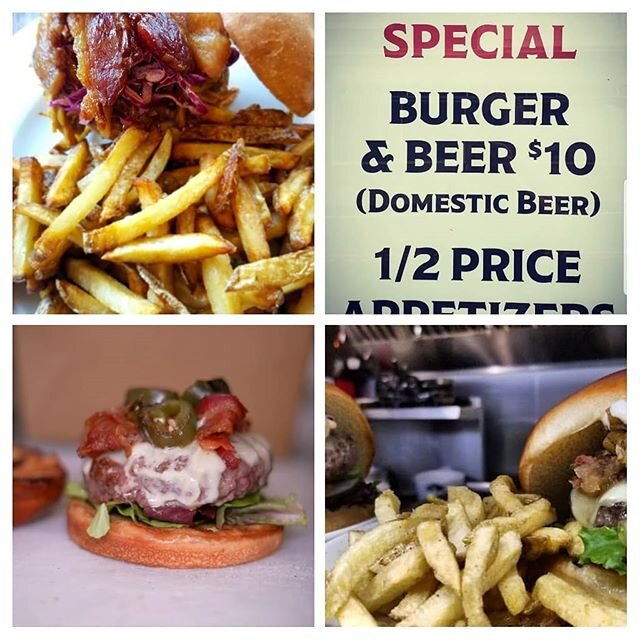 This includes a Classic House Cheeseburger and a Domestic Beer. We also offer select 1/2-price appetizers